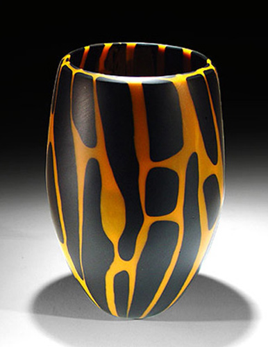 Mango Faux vessel Blown fused-glass Roll Up, wheel cut & belt sanded