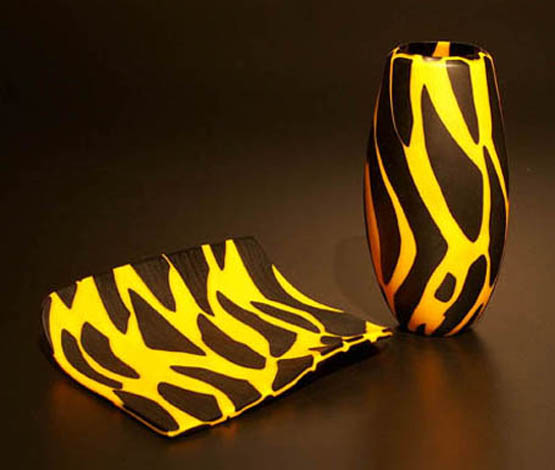 Mango Faux set Blown fused-glass Roll Up, wheel cut & belt sanded