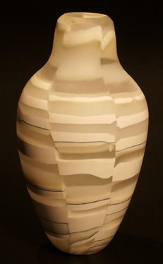 Blown fused-glass Roll Up, wheel cut & belt sanded